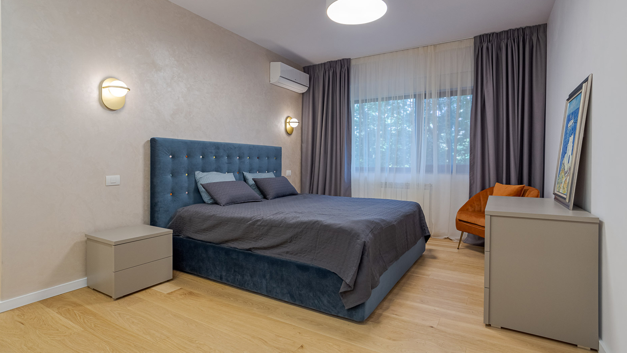 Bedroom Designed with Chipboard Furniture – Three-Room Apartment Design Project in Dubai