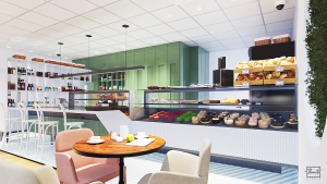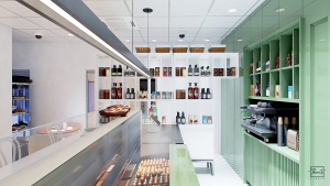 This interior design project for a refined cake shop in Dubai has been developed with great dedication by our team, with the intention of creating a friendly, elegant and welcoming space where features such as contemporary aesthetics and maximum functionality coexist harmoniously. The lush, attractive and unique environment offers customers an escape from the everyday, allowing them to enjoy a specialty prepared with passion and care.
